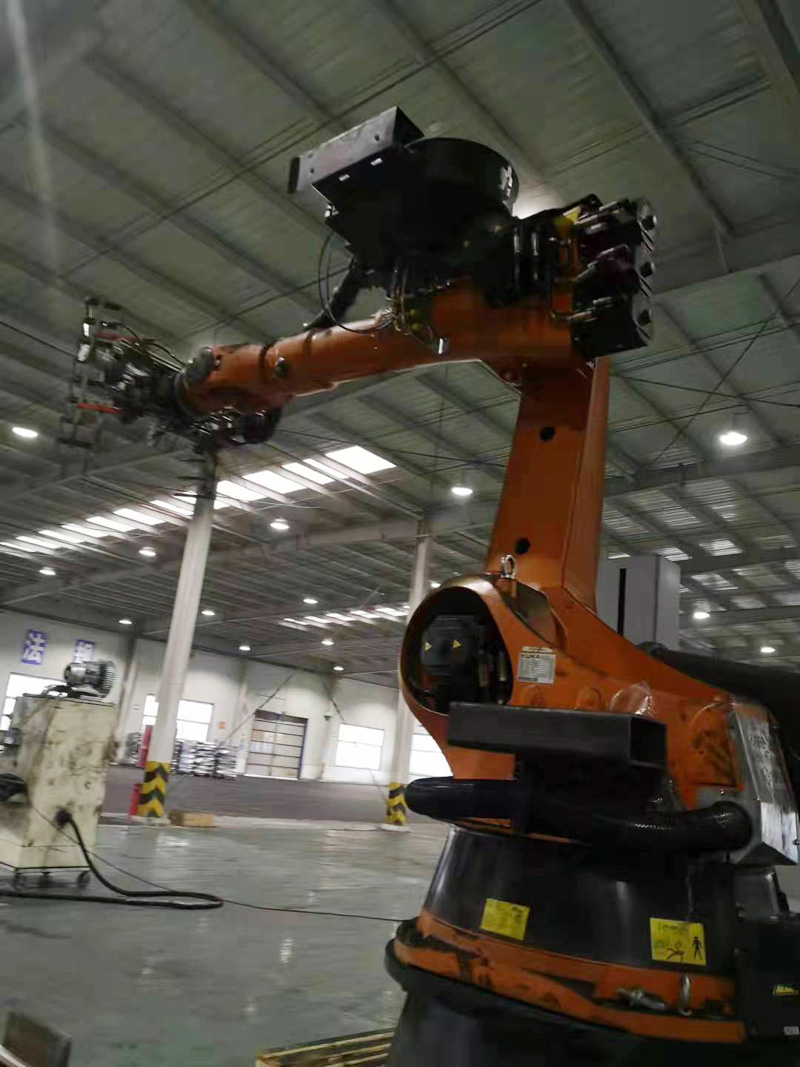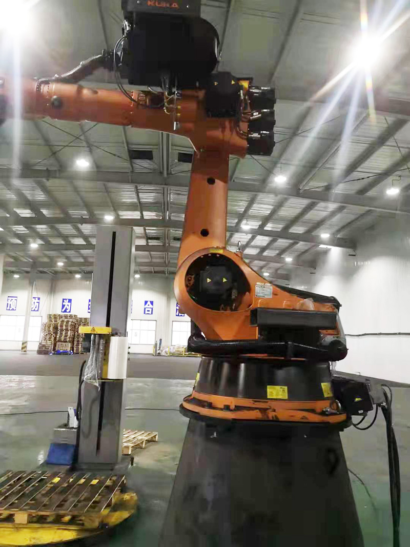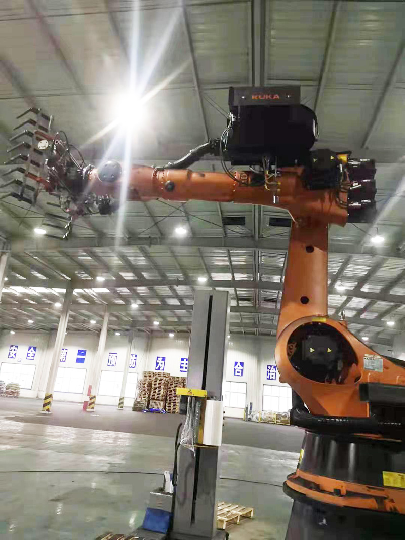 2、占地面积少。有利于客户厂房中生产线的布置,并可留出较大的库房面积。码垛机器人可以设置在狭窄的空间,即可有效的使用。