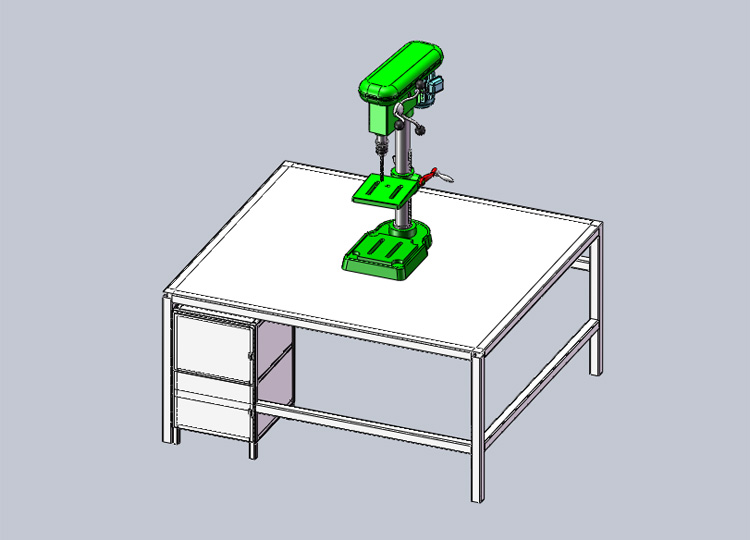 电机钻孔台放在作业台上,主轴垂直布置的小型钻床。是一种体积小,操作简便,通常安装在专用工作台上使用的小型钻孔加工机床。工作台可在圆立柱上作上下移动,并可绕立柱转到任意位置。当工件较大时,可把工件台转开,直接放在钻床地面上钻孔。这种钻台灵活性较大,转速高,生产效率高,使用方便,因而是零件加工、装配和修理工作中常用的设备之一。