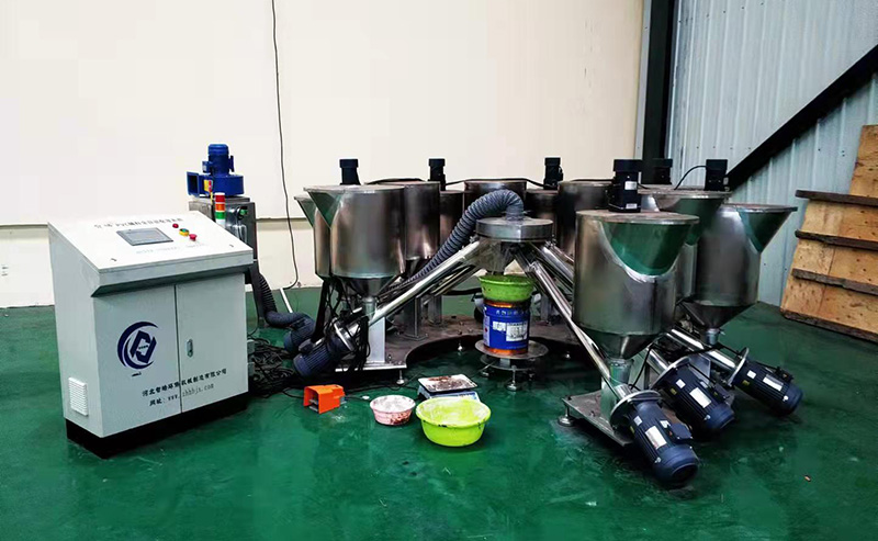 6.调速:根据配比中小料的重量多少,自动调节出料速度,此机配置了大功率输料电机,使整个配料过程速度快,更稳,更准。