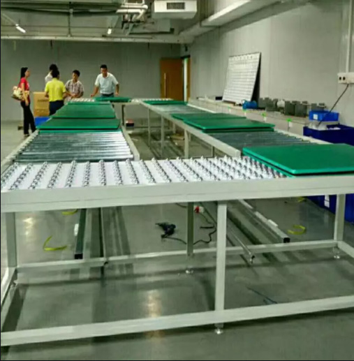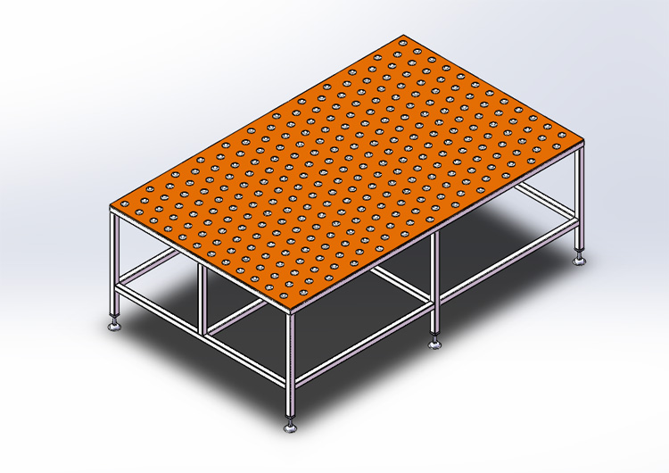 万向工作台是将若干具有承载力的万向球以一定的密度固定在钢板上形成平台,由于万向球的滚动灵活,使在其上运行的工作板、物料箱等物体能非常灵活的滑移,从而大大减小工人的劳动强度。